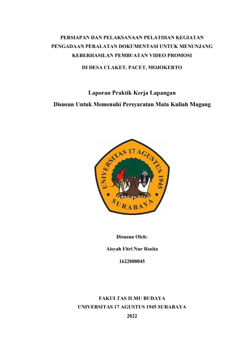 PEMBUATAN LAPORAN BUKU PANDUAN PADA PELATIHAN PEMBUATAN KONTEN VIDEO PROMOSI DAN DOKUMENTER DI DESA CLAKET, PACET, MOJOKERTO |