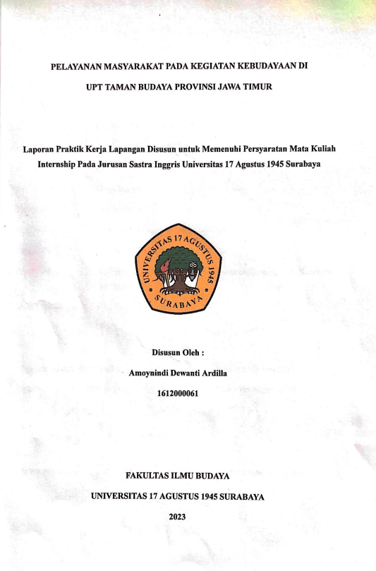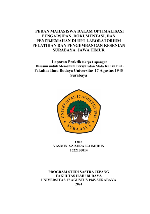 PERAN MAHASISWA DALAM OPTIMALISASI PENGARSIPAN, DOKUMENTASI, DAN PENERJEMAHAN DI UPT LABORATORIUM PELATIHAN DAN PENGEMBANGAN KESENIAN SURABAYA, JAWA TIMUR |