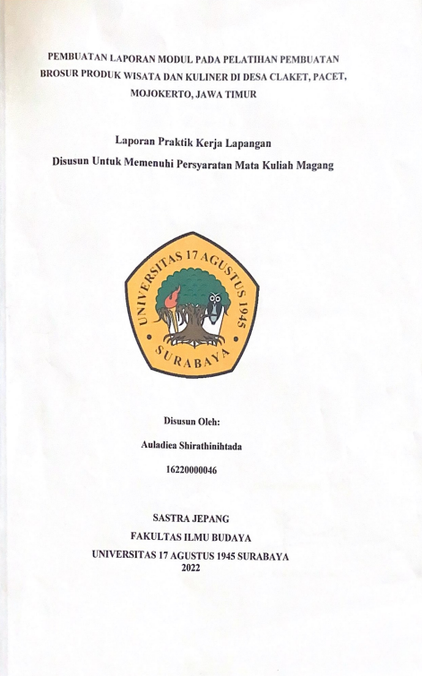 PEMBUATAN LAPORAN MODUL PADA PELATIHAN PEMBUATAN BROSUR PRODUK WISATA DAN KULINER DI DESA CLAKET, PAСЕТ, MOJOKERTO, JAWA TIMUR |