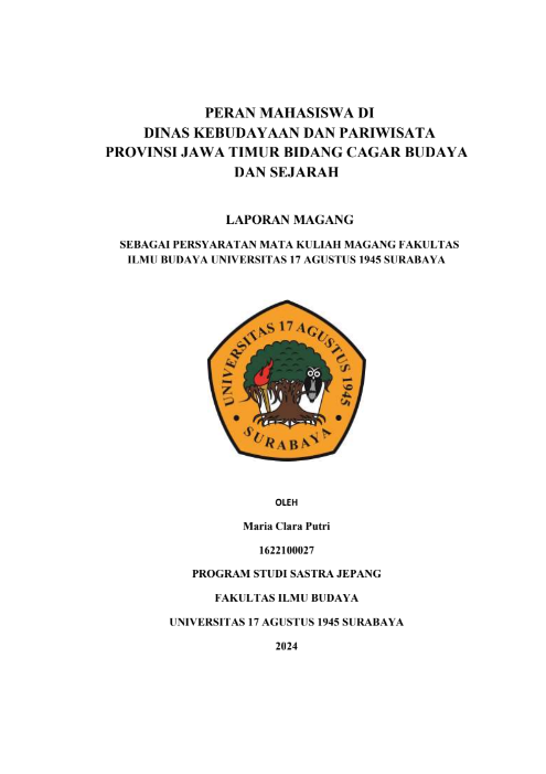 LAPORAN KEGIATAN PRAKTIK KERJA LAPANGAN DI BIDANG DESTINASI DINAS KEBUDAYAAN DAN PARIWISATA PROVINSI JAWA TIMUR |