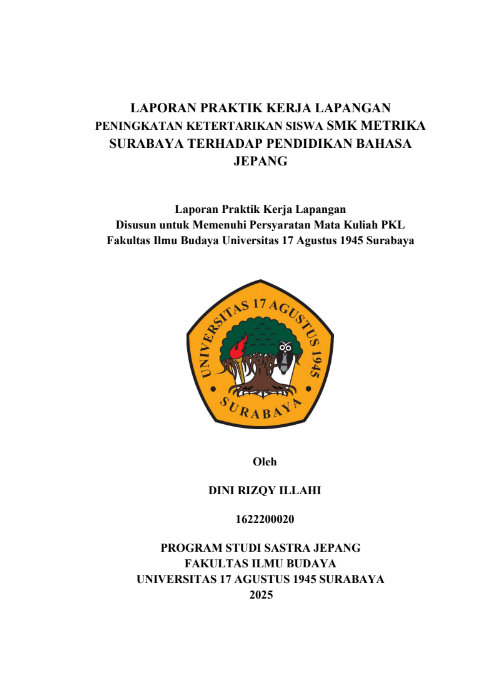LAPORAN PRAKTIK KERJA LAPANGAN PENINGKATAN KETERTARIKAN SISWA SMK METRIKA SURABAYA TERHADAP PENDIDIKAN BAHASA JEPANG |