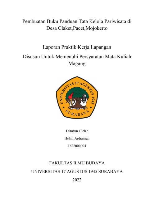 PEMBUATAN ARTIKEL ILMIAH TENTANG PELATIHAN TATA KELOLA PARIWISATA BAGI PELAKU WISATA DI DESA CLAKET, PACET, MOJOKERTO |
