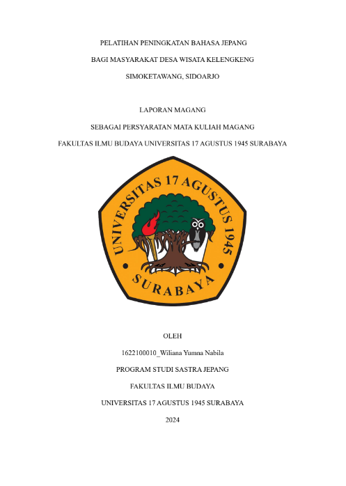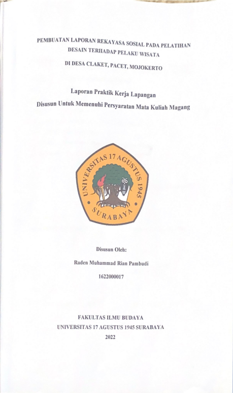 PEMBUATAN LAPORAN REKAYASA SOSIAL PADA PELATIHAN BAHASA JEPANG TERHADAP PELAKU WISATA DI DESA CLAKET, PACET, MOJOKERTO, JAWA TIMUR |