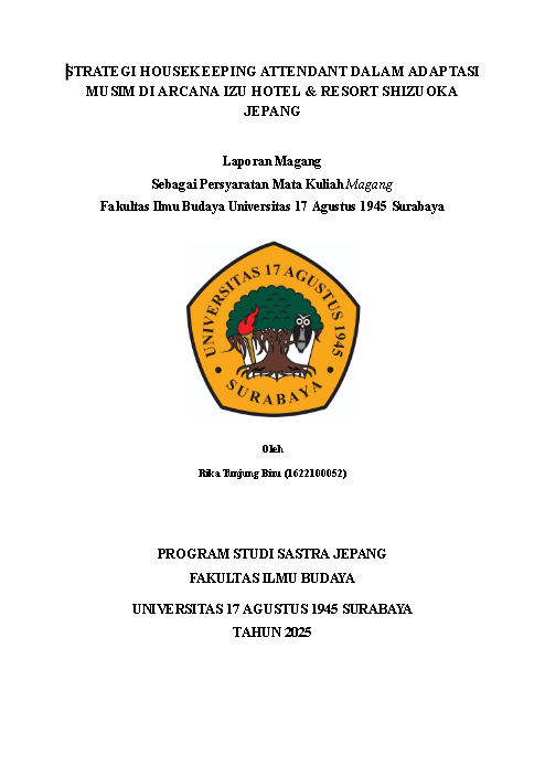 STRATEGI HOUSEKEEPING ATTENDANT DALAM ADAPTASI MUSIM DI ARCANA IZU HOTEL & RESORT SHIZUOKA JEPANG |