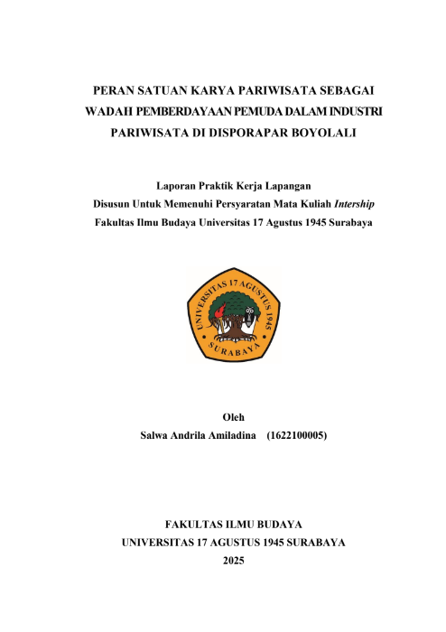 PERAN SATUAN KARYA PARIWISATA SEBAGAI WADAH PEMBERDAYAAN PEMUDA DALAM INDUSTRI PARIWISATA DI DISPORAPAR BOYOLALI |